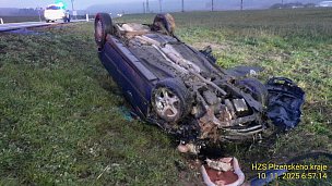 Krátce po půlnoci zasahovali profesionální a dobrovolní hasiči z Nýřan v katastru obce Pňovany u dopravní nehody osobního vozidla se zraněním.