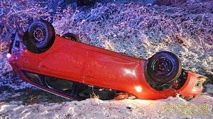 Jednotka z Domažlic vyjela na dopravní nehodu jednoho osobního vozidla na silnici č.195 u Trhanova, které skončilo mimo komunikaci a na střeše. V tomto případě je zde jedna zraněná osoba, která je v péči ZZS. Nehoda je bez úniku provozních kapalin, hasiči zajistili protipožární opatření.