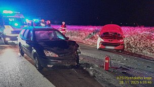 Dopravní nehoda dvou osobních automobilů zaměstnala hasiče na silnici mezi Osekem a Rokycanami. Nehoda bez se obešla bez vyproštění, dvě zraněné osoby skončily v péči ZZS. Hasiči zajistili protipožární opatření a odpojení akumulátorů. Hasiči ze stanice Rokycany po zaměření nehody uvolnili komunikaci odtažením vozidla.