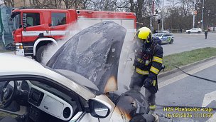 Na křižovatce ulic Sukova a Klatovská v Plzni hasiči likvidovali požár osobního automobilu. Ke zraněním nedošlo. Požár komplikoval provoz v místě události. Výši škody a příčinu zjišťuje vyšetřovatel.